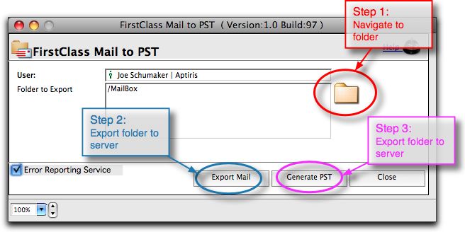 fcExport is a utility that converts FirstClass mail to .PST format. PST formatted files can be opened with any number of 3rd party applications, such as Outlook |